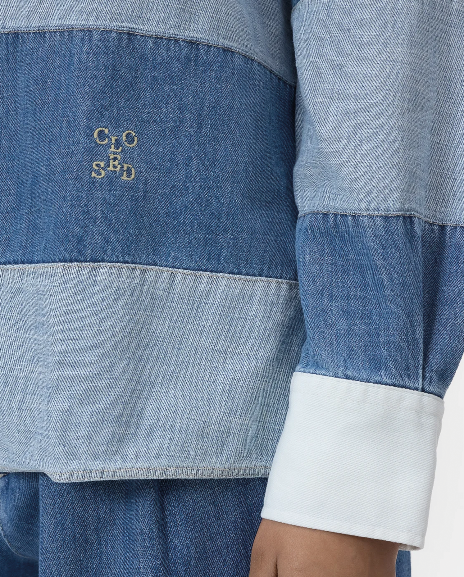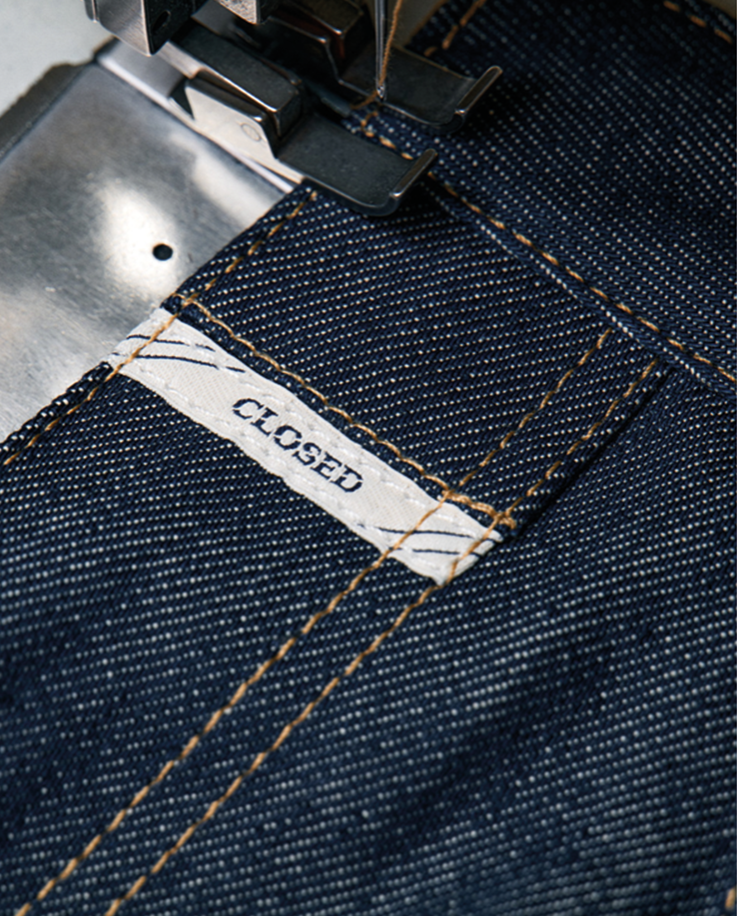The 33-degree angle is a defining element of the identity, rooted in Closed’s signature X-shaped jean pockets.