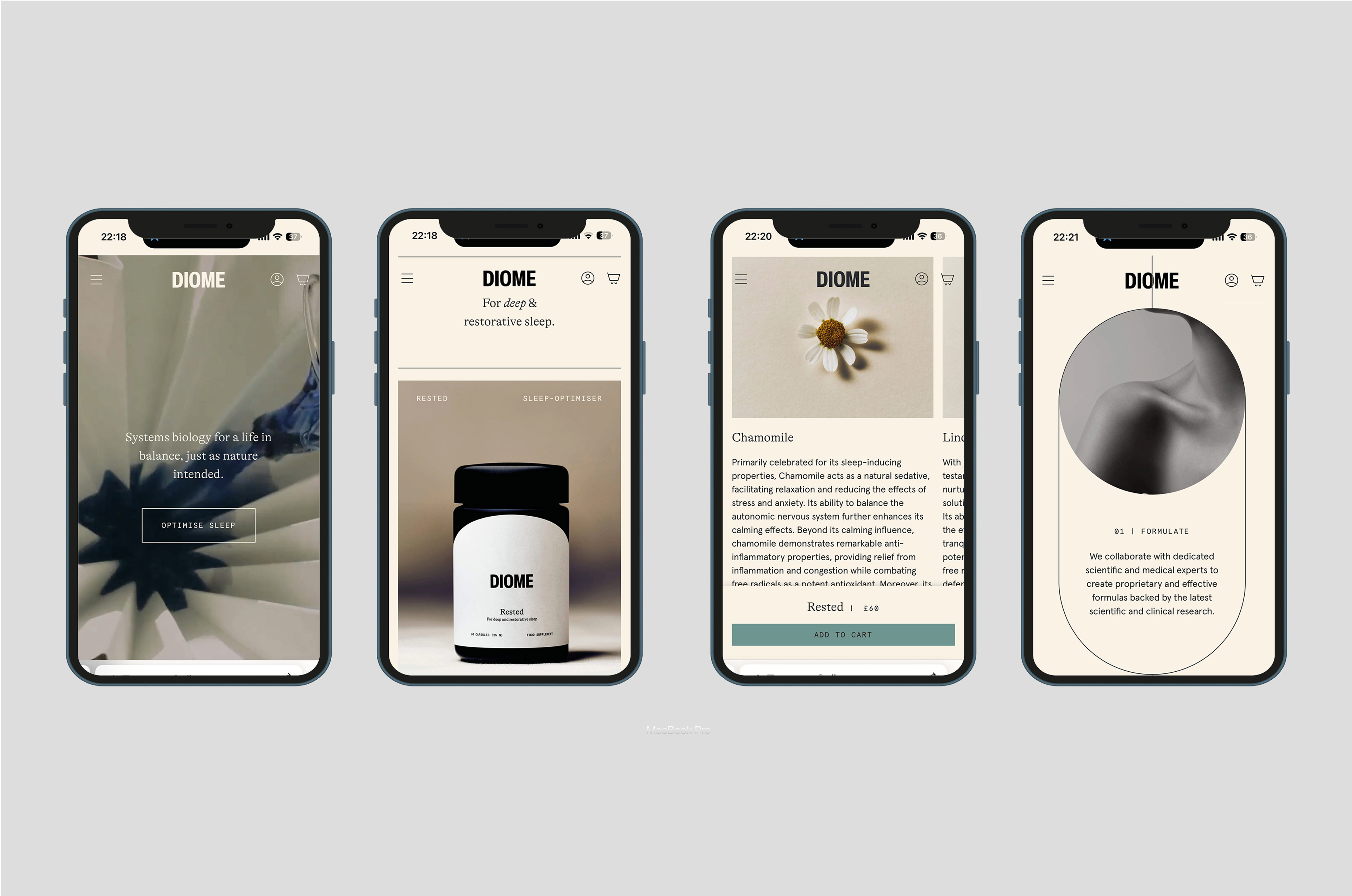 Brand Strategy and Brand Identity Concept for DIOME. Part of creating a new innovative brand in the natural medicine category together with ACNE. The design was finalized by ACNE.